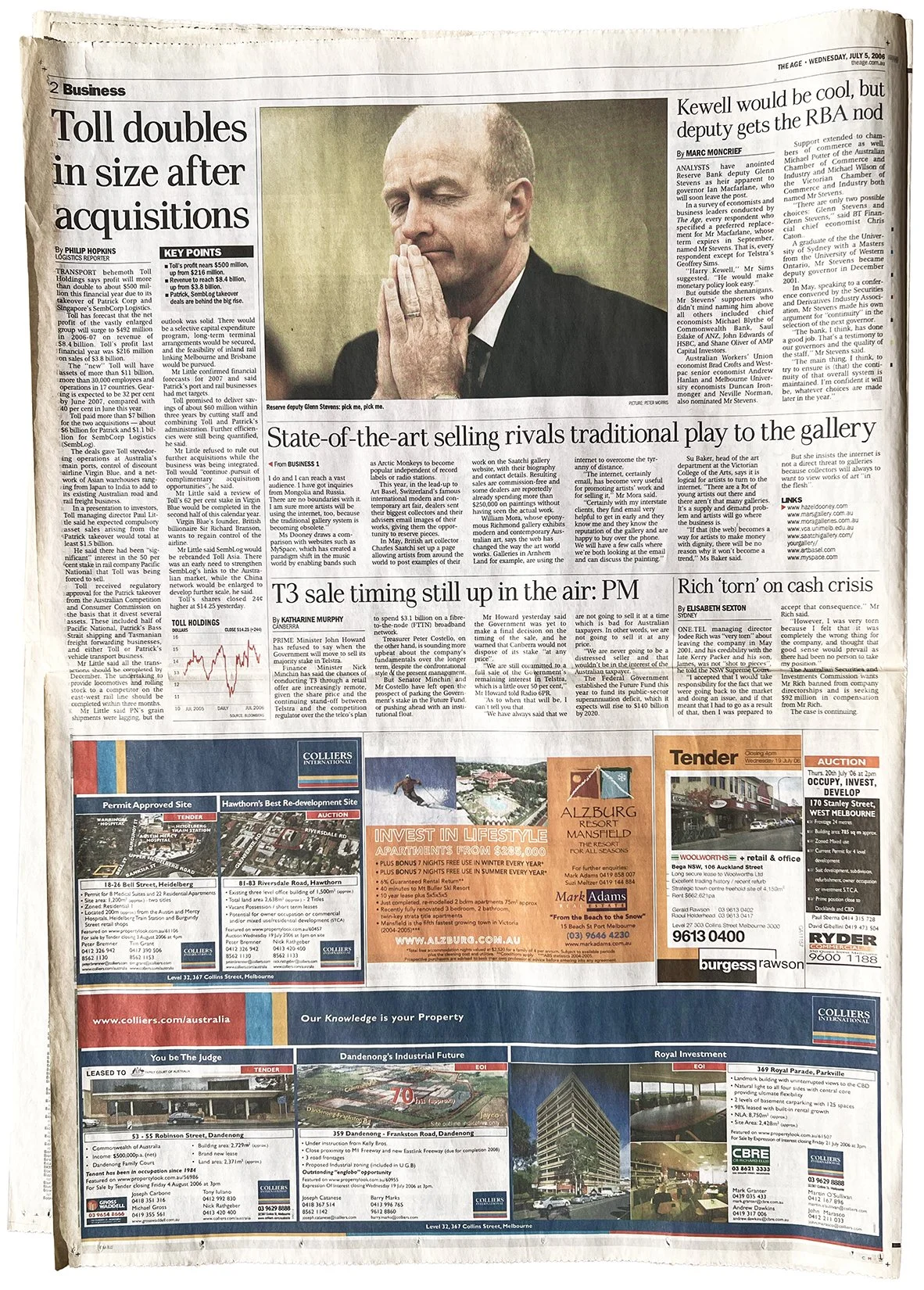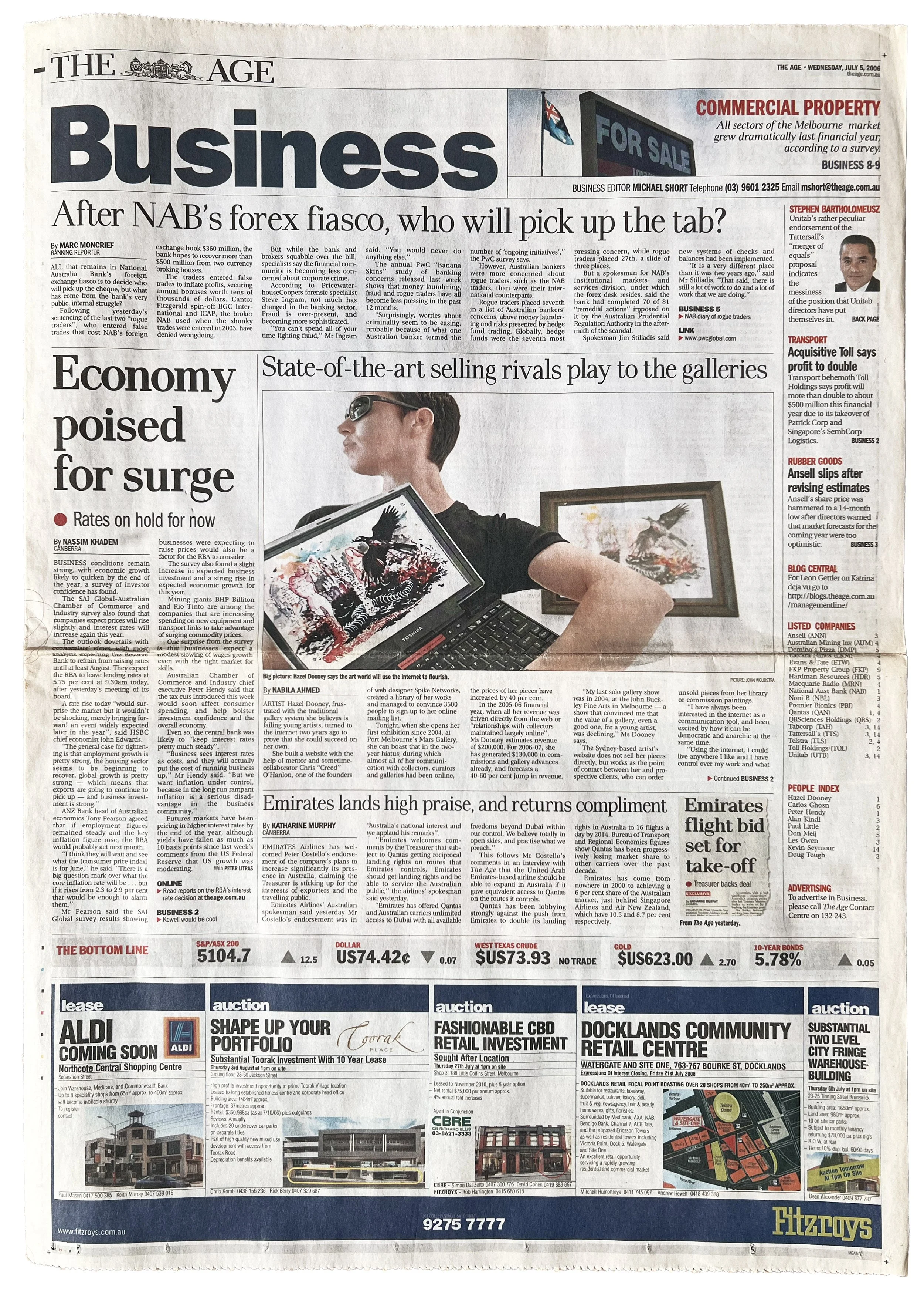2006 Ahmed, Nabila. ‘State-of-the-art selling rivals play to the galleries’, The Age, Business (Ed. Michael Short), 5 July (pp. 1-2).